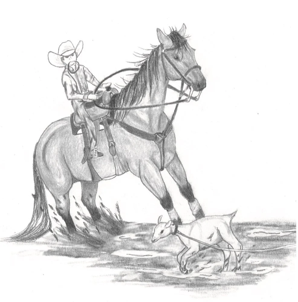 The contestant must be mounted on a horse when entering the arena and must ride from the starting line to the goat, dismount from their horse, throw the goat by hand, cross, wrap and tie by hand, at least 3 feet together with a leather string, pigging string or rope. No wire is to be used in the goat string.